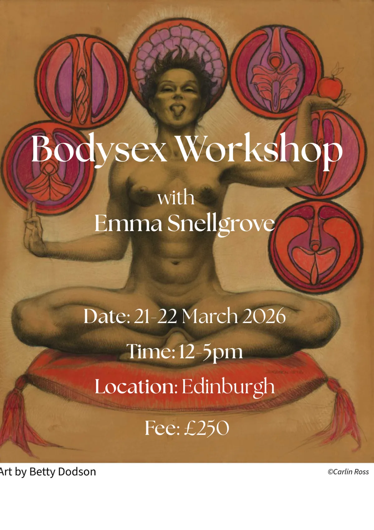 If you cancel at any time after you register, your £150 initial deposit will not be refunded but can be transferred to another Bodysex Workshop hosted by Emma.